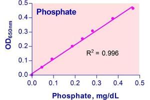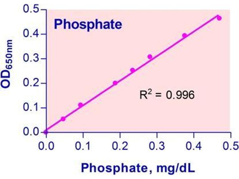 Sensitive and accurate. Linear detection range 0.30 µM (0.0028 mg/dL) to 50 µM (0.47 mg/dL) phosphate in 96-well plate assay.