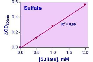 Sensitive and accurate. Detection range 0.02 mM (0.19 mg/dL) to 2 mM (19.2 mg/dL) sulfate in 96-well plate assay.