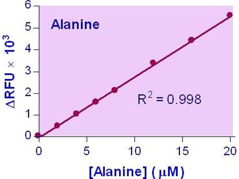 - Sensitive and accurate. Linear detection range in 96-well plate: 1 to 200 µM alanine for colorimetric assays and 0.4 to 20 µM for fluorimetric assays.