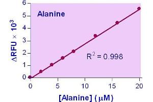 Quantitative assay of L-Alanine by colorimetric (570nm) or fluorimetric (530nm/590nm) methods.