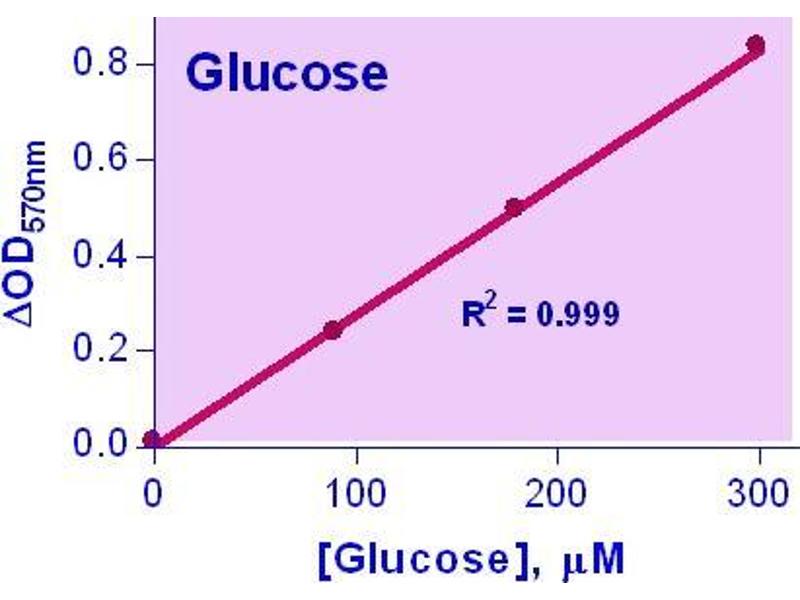 Quantitative determination of glucose by colorimetric (570nm) or fluorometric (530nm/590nm) methods.