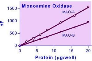 Rapid, quantitative, fluorimetric (530nm/585nm) determination of monoamine oxidase activity or MAO inhibitor screen.