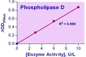 Quantitative determination of phospholipase D activity by colorimetric (570nm) or fluorimetric (530/590nm) method.
