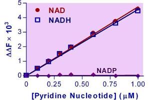 Sensitive determination of NAD and NADH by fluorometric (530/585nm) method. Procedure: 10 min.