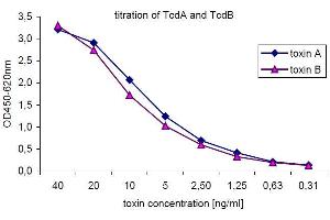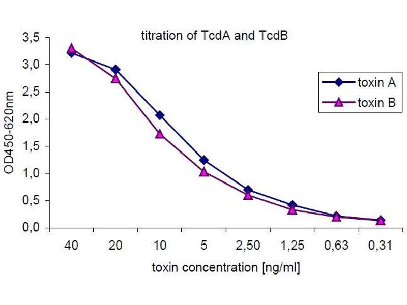 - Standard controls: The standard control toxins are recombinant toxins with a concentration of 80 ng/ml (equivalent to the native C. difficile toxins) as determined by the method of Bradford.