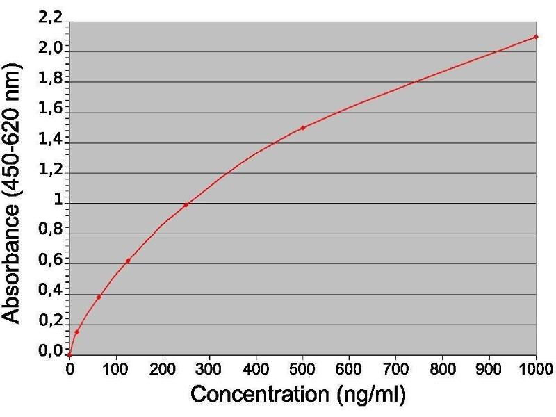 - A polyclonal antibody specific to the gamma heavy chain of human IgG is pre-coated onto microwells. Samples and standards are pipetted into microwells and human IgG present in the sample are bound by the capture antibody. Then, a HRP (horseradish peroxidase) conjugated anti-human IgG (H+L) antibody is pipetted and incubated simultaneously with samples. After washing microwells in order to remove any non specific binding, the ready to use substrate solution (TMB) is added to microwells and color develops proportionally to the amount of human IgG in the sample. Color development is then stopped by addition of stop solution. Absorbance is measured at 450 nm.