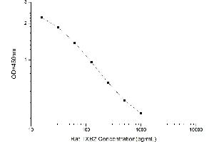 Average the duplicate readings for each standard and samples. Create a standard curve by plotting the mean OD value for each standard on the y-axis against the concentration on the x-axis and draw a best fit curve through the points on the graph. It is recommended to use some professional software to do this calculation, such as curve expert 1.3 or 1.4. In the software interface, a best fitting equation of standard curve will be calculated using OD values and concentrations of standard sample. The software will calculate the concentration of samples after entering the OD value of samples. If samples have been diluted, the concentration calculated from the standard curve must be multiplied by the dilution factor. If the OD of the sample surpasses the upper limit of the standard curve, you should re-test it after appropriate dilution. The actual concentration is the calculated concentration multiplied dilution factor.