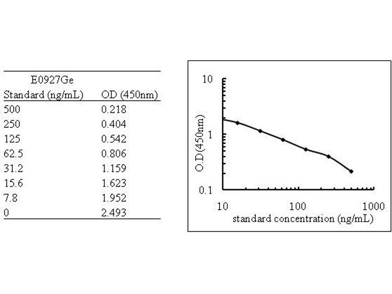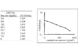 - The microtiter plate provided in this kit has been pre-coated with an antibody specific to the target. Standards or samples are then added to the appropriate microtiter plate wells with a biotin-conjugated polyclonal antibody preparation specific for target and Avidin conjugated to Horseradish Peroxidase (HRP) is added to each microplate well and incubated. Then a TMB (3,3'5, 5' tetramethyl-benzidine) substrate solution is added to each well. Only those wells that contain the target, biotin-conjugated antibody and enzyme-conjugated Avidin will exhibit a change in color. The enzyme-substrate reaction is terminated by the addition of a sulphuric acid solution and the color change is measured spectrophotometrically at a wavelength of 450 nm ± 2 nm. The concentration of target in the samples is then determined by comparing the O.D. of the samples to the standard curve.