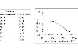 - The microtiter plate provided in this kit has been pre-coated with an antibody specific to the target. Standards or samples are then added to the appropriate microtiter plate wells with a biotin-conjugated polyclonal antibody preparation specific for target and Avidin conjugated to Horseradish Peroxidase (HRP) is added to each microplate well and incubated. Then a TMB (3,3'5, 5' tetramethyl-benzidine) substrate solution is added to each well. Only those wells that contain the target, biotin-conjugated antibody and enzyme-conjugated Avidin will exhibit a change in color. The enzyme-substrate reaction is terminated by the addition of a sulphuric acid solution and the color change is measured spectrophotometrically at a wavelength of 450 nm ± 2 nm. The concentration of target in the samples is then determined by comparing the O.D. of the samples to the standard curve.