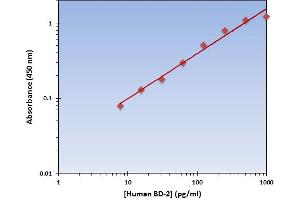 - The Human BD-2 ELISA Kit allows for the detection and quantification of endogenous levels of natural and/or recombinant Human BD-2 proteins.