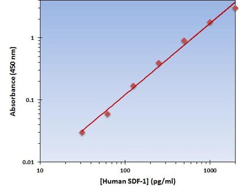 - The Human SDF-1 ELISA Kit allows for the detection and quantification of endogenous levels of natural and/or recombinant Human SDF-1 proteins within the range of 32-2000 pg/mL.