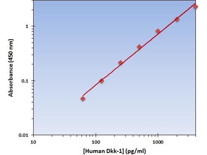 - The Human Dkk-1 ELISA Kit allows for the detection and quantification of endogenous levels of natural and/or recombinant Human Dkk-1 proteins within the range of 63-4000 pg/mL.