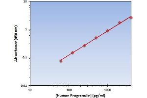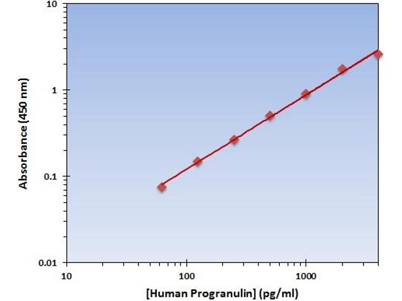 - The Human Progranulin ELISA Kit allows for the detection and quantification of endogenous levels of natural and/or recombinant Human Progranulin proteins within the range of 63-4000 pg/mL.