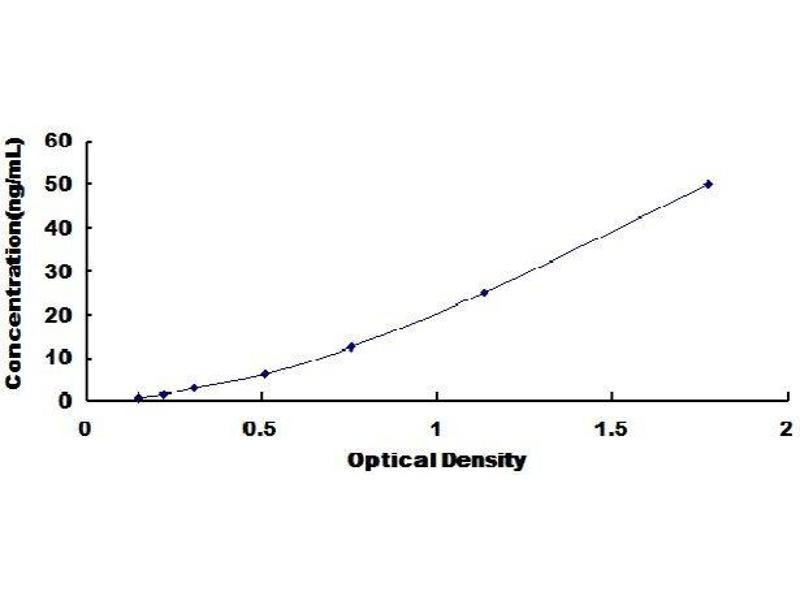 The microtiter plate provided in this kit has been pre-coated with an antibody specific to the index. Standards or samples are then added to the appropriate microtiter plate wells with a biotin-conjugated antibody preparation specific to the index. Next, Avidin conjugated to Horseradish Peroxidase (HRP) is added to each microplate well and incubated. After TMB substrate solution is added, only those wells that contain the index, biotin-conjugated antibody and enzyme-conjugated Avidin will exhibit a change in color. The enzyme-substrate reaction is terminated by the addition of sulphuric acid solution and the color change is measured spectrophotometrically at a wavelength of 450nm ± 10nm. The concentration of the index in the samples is then determined by comparing the O.D. of the samples to the standard curve.