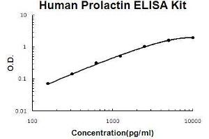 - human Prolactin ELISA Kit was based on standard sandwich enzyme-linked immune-sorbent assay technology. A monoclonal antibody from mouse specific for Prolactin has been precoated onto 96-well plates. Standards(E.coli, L29-C227) and test samples are added to the wells, a biotinylated detection polyclonal antibody from goat specific for Prolactin is added subsequently and then followed by washing with PBS or TBS buffer. Avidin-Biotin-Peroxidase Complex was added and unbound conjugates were washed away with PBS or TBS buffer. HRP substrate TMB was used to visualize HRP enzymatic reaction. TMB was catalyzed by HRP to produce a blue color product that changed into yellow after adding acidic stop solution. The density of yellow is proportional to the human Prolactin amount of sample captured in plate.