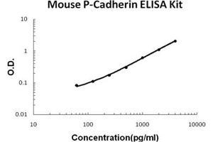 - mouse P-Cadherin ELISA Kit was based on standard sandwich enzyme-linked immune-sorbent assay technology. A monoclonal antibody from rat specific for P-Cadherin has been precoated onto 96-well plates. Standards(NSO, E100-G647) and test samples are added to the wells, a biotinylated detection polyclonal antibody from goat specific for P-Cadherin is added subsequently and then followed by washing with PBS or TBS buffer. Avidin-Biotin-Peroxidase Complex was added and unbound conjugates were washed away with PBS or TBS buffer. HRP substrate TMB was used to visualize HRP enzymatic reaction. TMB was catalyzed by HRP to produce a blue color product that changed into yellow after adding acidic stop solution. The density of yellow is proportional to the mouse P-Cadherin amount of sample captured in plate.