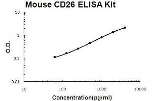 - mouse CD26 ELISA Kit was based on standard sandwich enzyme-linked immune-sorbent assay technology. A monoclonal antibody from rat specific for CD26 has been precoated onto 96-well plates. Standards(NSO, S29-H760) and test samples are added to the wells, a biotinylated detection polyclonal antibody from goat specific for CD26 is added subsequently and then followed by washing with PBS or TBS buffer. Avidin-Biotin-Peroxidase Complex was added and unbound conjugates were washed away with PBS or TBS buffer. HRP substrate TMB was used to visualize HRP enzymatic reaction. TMB was catalyzed by HRP to produce a blue color product that changed into yellow after adding acidic stop solution. The density of yellow is proportional to the mouse CD26 amount of sample captured in plate.