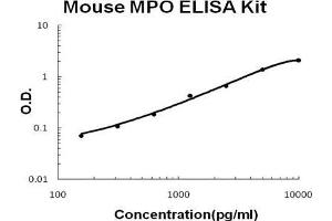 - mouse MPO ELISA Kit is based on standard sandwich enzyme-linked immune-sorbent assay technology. A monoclonal antibody from rat specific for MPO has been precoated onto 96-well plates. Standards(NSO, M16-T718) and test samples are added to the wells, a biotinylated detection polyclonal antibody from goat specific for MPO is added subsequently and then followed by washing with PBS or TBS buffer. Avidin-Biotin-Peroxidase Complex is added and unbound conjugates are washed away with PBS or TBS buffer. HRP substrate TMB are used to visualize HRP enzymatic reaction. TMB is catalyzed by HRP to produce a blue color product that changed into yellow after adding acidic stop solution. The density of yellow is proportional to the mouse MPO amount of sample captured in plate.