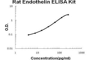 - rat Endothelin ELISA Kit is based on standard sandwich enzyme-linked immune-sorbent assay technology. A monoclonal antibody from mouse specific for Endothelin has been precoated onto 96-well plates. Standards (rat peptide,C53-W73) and test samples are added to the wells, a biotinylated detection polyclonal antibody from goat specific for Endothelin is added subsequently and then followed by washing with PBS or TBS buffer. Avidin-Biotin-Peroxidase Complex is added and unbound conjugates are washed away with PBS or TBS buffer. HRP substrate TMB are used to visualize HRP enzymatic reaction. TMB is catalyzed by HRP to produce a blue color product that changed into yellow after adding acidic stop solution. The density of yellow is proportional to the rat Endothelin amount of sample captured in plate.
