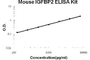 - mouse IGFBP2 ELISA Kit was based on standard sandwich enzyme-linked immune-sorbent assay technology. A monoclonal antibody from rat specific for IGFBP2 has been precoated onto 96-well plates. Standards(NSO, E35-Q305) and test samples are added to the wells, a biotinylated detection polyclonal antibody from goat specific for IGFBP2 is added subsequently and then followed by washing with PBS or TBS buffer. Avidin-Biotin-Peroxidase Complex was added and unbound conjugates were washed away with PBS or TBS buffer. HRP substrate TMB was used to visualize HRP enzymatic reaction. TMB was catalyzed by HRP to produce a blue color product that changed into yellow after adding acidic stop solution. The density of yellow is proportional to the mouse IGFBP2 amount of sample captured in plate.