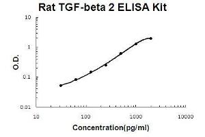 - rat TGF-beta 2 ELISA Kit was based on standard sandwich enzyme-linked immune-sorbent assay technology. A monoclonal antibody from mouse specific for TGF-beta 2 has been precoated onto 96-well plates. Standards(NSO, A303-S414) and test samples are added to the wells, a biotinylated detection polyclonal antibody from goat specific for TGF-beta 2 is added subsequently and then followed by washing with PBS or TBS buffer. Avidin-Biotin-Peroxidase Complex was added and unbound conjugates were washed away with PBS or TBS buffer. HRP substrate TMB was used to visualize HRP enzymatic reaction. TMB was catalyzed by HRP to produce a blue color product that changed into yellow after adding acidic stop solution. The density of yellow is proportional to the rat TGF-beta 2 amount of sample captured in plate.