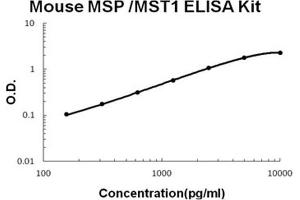 - mouse MSP ELISA Kit was based on standard sandwich enzyme-linked immune-sorbent assay technology. A monoclonal antibody from rat specific for MSP has been precoated onto 96-well plates. Standards(CHO, Q19-E716) and test samples are added to the wells, a biotinylated detection polyclonal antibody from goat specific for MSP is added subsequently and then followed by washing with PBS or TBS buffer. Avidin-Biotin-Peroxidase Complex was added and unbound conjugates were washed away with PBS or TBS buffer. HRP substrate TMB was used to visualize HRP enzymatic reaction. TMB was catalyzed by HRP to produce a blue color product that changed into yellow after adding acidic stop solution. The density of yellow is proportional to the mouse MSP amount of sample captured in plate.