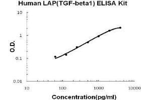 - human LAP(TGF-beta1) ELISA Kit was based on standard sandwich enzyme-linked immune-sorbent assay technology. A monoclonal antibody from mouse specific for LAP(TGF-beta1) has been precoated onto 96-well plates. Standards(sf21, L30-R278) and test samples are added to the wells, a biotinylated detection polyclonal antibody from goat specific for LAP(TGF-beta1) is added subsequently and then followed by washing with PBS or TBS buffer. Avidin-Biotin-Peroxidase Complex was added and unbound conjugates were washed away with PBS or TBS buffer. HRP substrate TMB was used to visualize HRP enzymatic reaction. TMB was catalyzed by HRP to produce a blue color product that changed into yellow after adding acidic stop solution. The density of yellow is proportional to the human LAP(TGF-beta1) amount of sample captured in plate.
