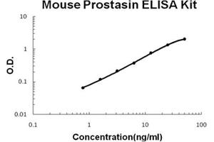 - mouse Prostasin ELISA Kit was based on standard sandwich enzyme-linked immune-sorbent assay technology. A monoclonal antibody from rat specific for Prostasin has been precoated onto 96-well plates. Standards(NSO, A30-Q289) and test samples are added to the wells, a biotinylated detection polyclonal antibody from goat specific for Prostasin is added subsequently and then followed by washing with PBS or TBS buffer. Avidin-Biotin-Peroxidase Complex was added and unbound conjugates were washed away with PBS or TBS buffer. HRP substrate TMB was used to visualize HRP enzymatic reaction. TMB was catalyzed by HRP to produce a blue color product that changed into yellow after adding acidic stop solution. The density of yellow is proportional to the mouse Prostasin amount of sample captured in plate.