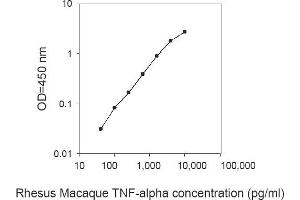 This Rhesus Monkey TNF alpha ELISA Kit is a Colorimetric ELISA Kit designed to quantify Rhesus Monkey TNF alpha.