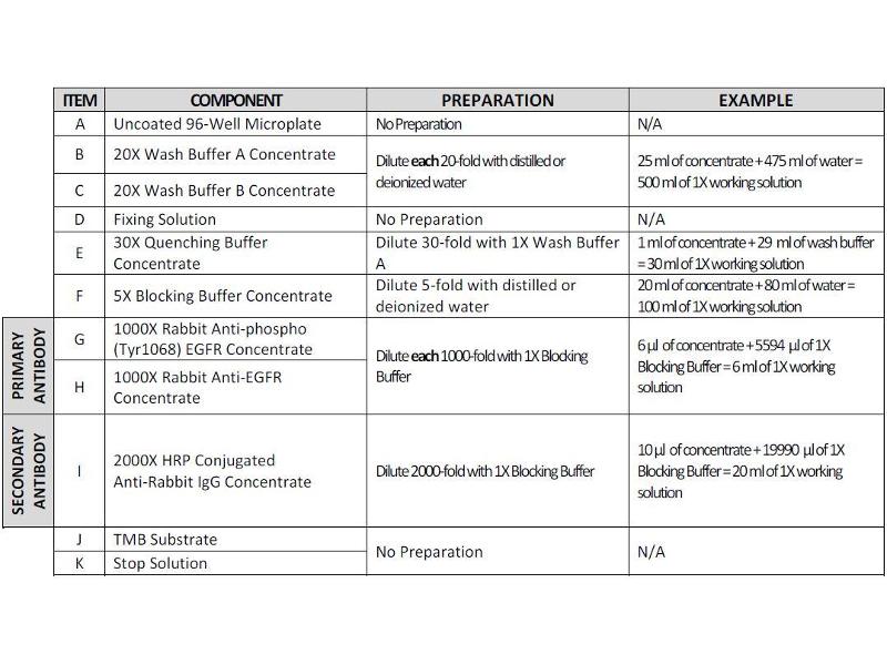 - The antibodies provided in this kit recognizes human EGFR phosphorylated at site Tyrosine-1068 and total EGRF for comparison.
