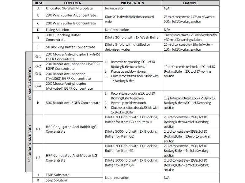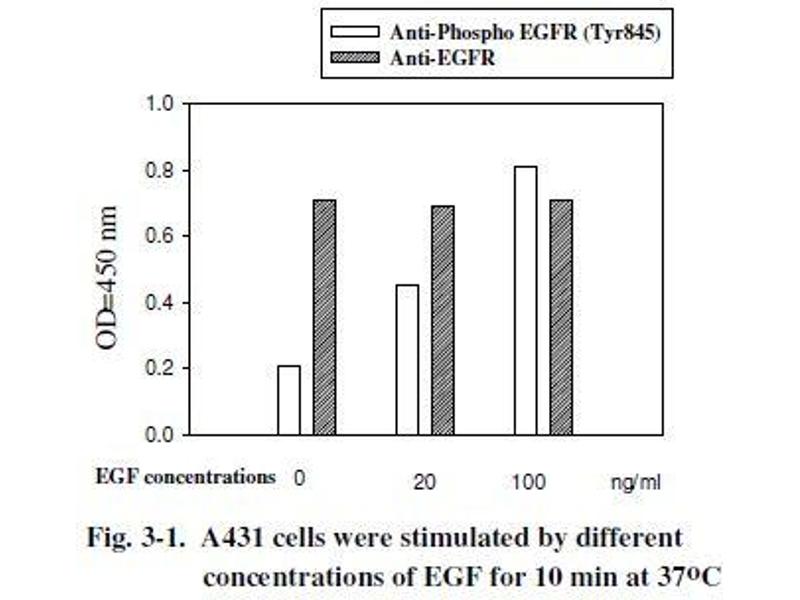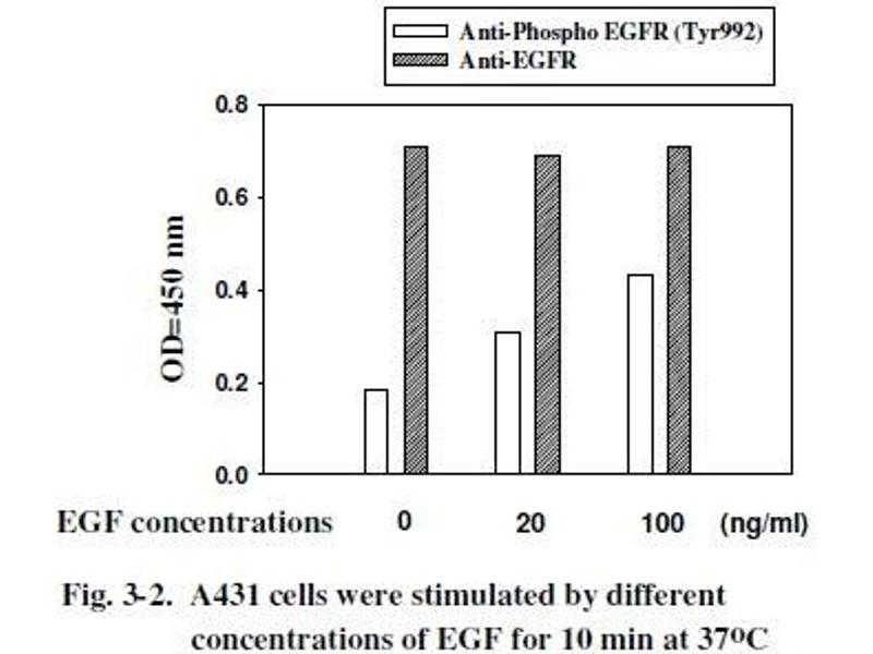 - The antibodies provided in this kit recognizes human, mouse and rat EGFR phosphorylated at multiple sites (Tyrosine-phosphorylated EGFR, EGFR phosphorylated at site Tyrosine-1068, EGFR phosphorylated at site Tyrosine-845 and EGFR phosphorylated at site Tyrosine-992) and total EGFR for comparison.