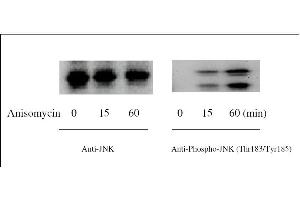 - The antibodies provided in this kit recognizes human, mouse and rat JNK phosphorylated at sites Thr183 and Tyr185 as well as total JNK for comparison.