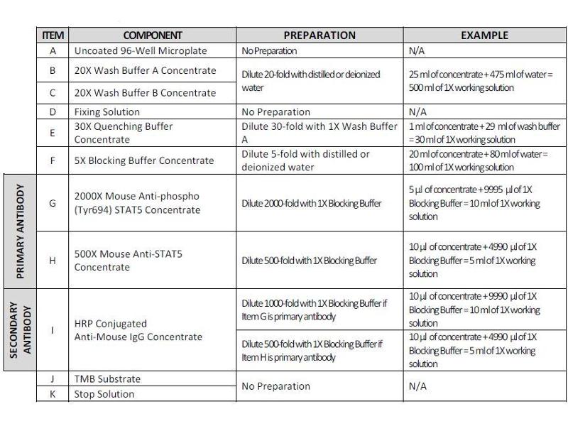- The antibodies provided in this kit recognizes human Stat 5 phosphorylated at site Tyrosine-694 and total Stat 5 for comparison.
