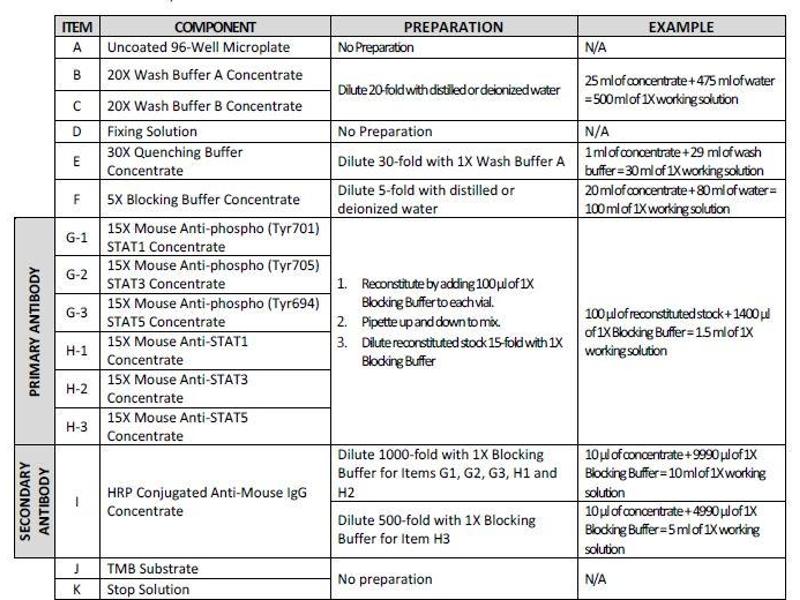 - The antibodies provided in this kit recognizes human, mouse and rat STAT 1 phosphorylated at site Tyrosine-701, STAT 3 phosphorylated at site Tyrosine-705, and STAT 5 phosphorylated at site Tyrosine-694. This kit also recognizes total Stat 1, total Stat2 and total Stat 3 for comparison.