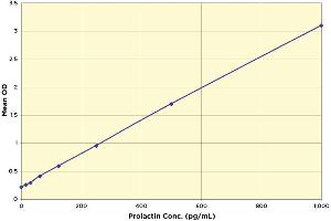 Or use the online tool from http://www.myassays.com/arbor-assays-prolactin-detection-kit.assay to calculate the data. *The MyAssays logo is a registered trademark of MyAssays Ltd. tyPical data Sample Mean OD Prolactin Conc. (pg/mL) Standard 1 3.096 1,000 Standard 2 1.696 500 Standard 3 0.953 250 Standard 4 0.591 125 Standard 5 0.409 62.5 Standard 6 0.29 31.25 Standard 6 0.254 15.625 Zero 0.215 0 Sample 1 2.703 856.8 Sample 2 1.04 277.0 Always run your own standard curve for calculation of results.