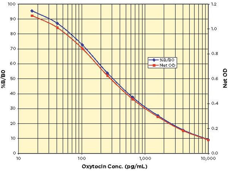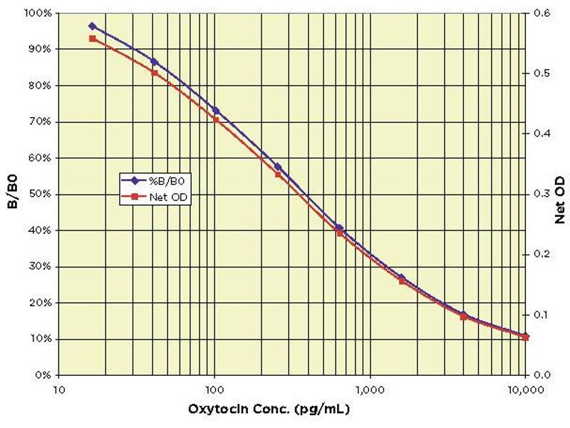 An oxytocin standard is provided to generate a standard curve for the assay and all samples should be read off the standard curve.