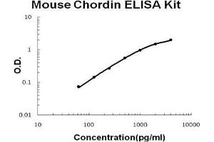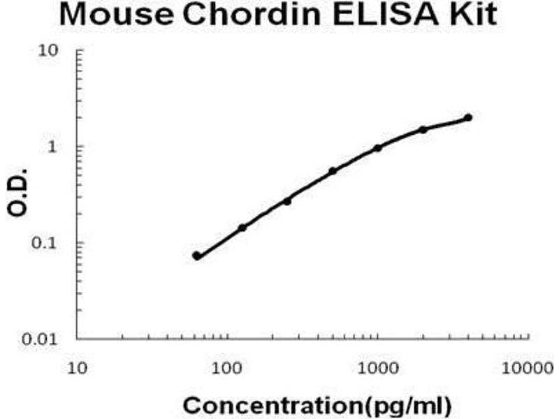 - mouse Chordin ELISA Kit was based on standard sandwich enzyme-linked immune-sorbent assay technology. A monoclonal antibody from rat specific for Chordin has been precoated onto 96-well plates. Standards (NSO, T27-S948) and test samples are added to the wells, a biotinylated detection polyclonal antibody from goat specific for Chordin is added subsequently and then followed by washing with PBS or TBS buffer. Avidin-Biotin-Peroxidase Complex was added and unbound conjugates were washed away with PBS or TBS buffer. HRP substrate TMB was used to visualize HRP enzymatic reaction. TMB was catalyzed by HRP to produce a blue color product that changed into yellow after adding acidic stop solution. The density of yellow is proportional to the mouse Chordin amount of sample captured in plate.