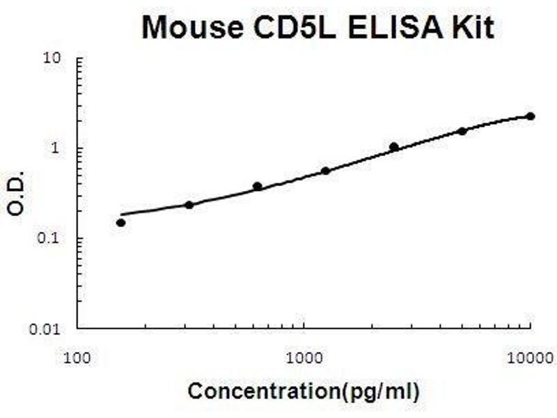 Aliquot 0.1 mL per well of the 10,000pg/mL, 5000pg/mL, 2500pg/mL, 1250pg/mL, 625pg/mL, 313pg/mL, 156pg/mL mouse CD5L standard solutions into the precoated 96-well plate. Add 0.1 mL of the sample diluent buffer into the control well (Zero well). Add 0.1 mL of each properly diluted sample of mouse cell culture supernates, serum or plasma (heparin, EDTA) to each empty well. See "Sample Dilution Guideline" above for details. It is recommended that each mouse CD5L standard solution and each sample be measured in duplicate.