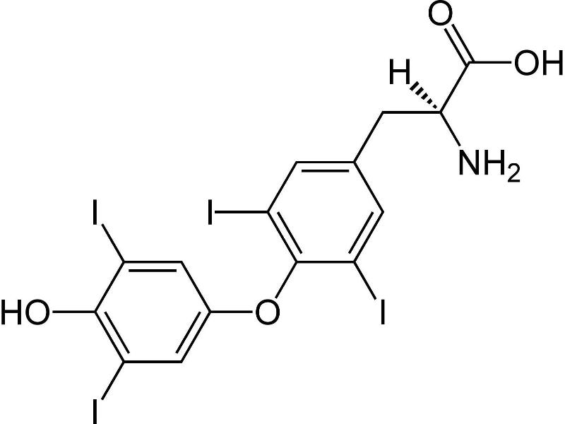 - Thyroxine is the main hormone produced by the thyroid gland. The thyroid hormones, triiodothyronine (T ) and thyroxine (T ), are tyrosine-based hormones produced by the thyroid gland that are primarily 3 4 responsible for regulation of metabolism. Iodine is necessary for the production of T and T . A deficiency 3 4 of iodine leads to decreased production of T and T , enlarges the thyroid tissue and will cause the 3 4 disease known as goitre. The major form of thyroid hormone in the blood is thyroxine (T ), which has 4 a longer half-life than T . The ratio of T to T released into the blood is roughly 20 to 1. T is converted 3 4 3 4 to the active T (three to four times more potent than T ) within cells by deiodinases (5'-iodinase). 3 4 These are further processed by decarboxylation and deiodination to produce iodothyronamine (T ) 1a and thyronamine (T ). All three isoforms of the deiodinases are selenium-containing enzymes, thus 0a dietary selenium is essential for T production. Hypothyroidism is the condition that results from 3 under-production of thyroxine by the thyroid gland either because the gland is naturally underactive or because radioiodine therapy or surgery for an overactive gland has resulted in underactivity. Thyroxine is taken to replace the deficiency which exists in such situations and therefore to restore normal metabolic activity. Thyroid hormone production is regulated via pituitary thyrotropin (TSH) modulation of thyroxine (T ) prohormone secretion by the thyroid gland and regulation of active 4 triiodothyronine (T ) production in peripheral tissues via metabolic events influencing enzyme.
