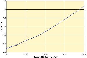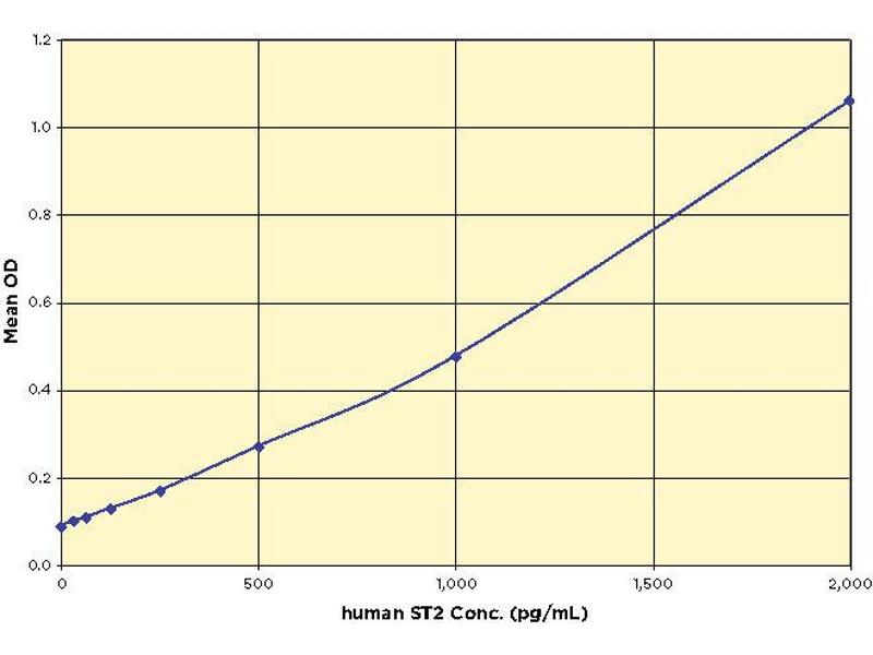A recombinant human ST2 standard is provided to generate a standard curve for the assay and all samples should be read off the standard curve.