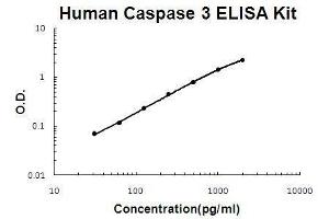 - human Caspase 3 ELISA Kit was based on standard sandwich enzyme-linked immune-sorbent assay technology. A monoclonal antibody from mouse specific for Caspase 3 has been precoated onto 96-well plates. Standards(Expression system for standard: E. coli, Immunogen sequence: S29-D175 & A183-H277) and test samples are added to the wells, a biotinylated detection polyclonal antibody from goat specific for Caspase 3 is added subsequently and then followed by washing with PBS or TBS buffer. Avidin-Biotin-Peroxidase Complex was added and unbound conjugates were washed away with PBS or TBS buffer. HRP substrate TMB was used to visualize HRP enzymatic reaction. TMB was catalyzed by HRP to produce a blue color product that changed into yellow after adding acidic stop solution. The density of yellow is proportional to the human Caspase 3 amount of sample captured in plate.