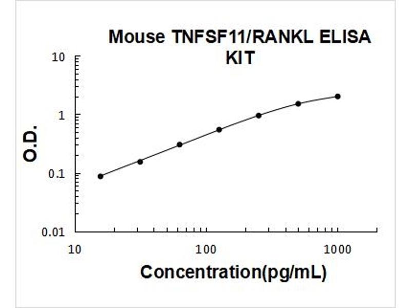TNFSF11 Reactivity: Mouse AA 72-316 Colorimetric Sandwich ELISA 62.5-4000 pg/mL Cell Culture Supernatant, Plasma (EDTA), Plasma (heparin), Serum