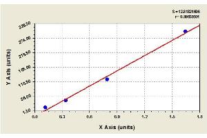 Create a standard curve by reducing the data using computer software capable of generating a four parameter logistic (4-PL) curve fit. As an alternative, construct a standard curve by plotting the mean absorbance for each standard on the x-axis against the concentration on the y-axis and draw a best fit curve through the points on the graph. The data may be linearized by plotting the log of the target antigen concentration versus the log of the O.D. and the best fit line can be determined by regression analysis. This procedure will produce an adequate but less precise fit of the data.