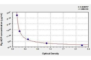 - This assay employs the competitive inhibition enzyme immunoassay technique. The microtiter plate provided in this kit has been pre-coated with an antibody specific to ADP. Standards or samples are added to the appropriate microtiter plate wells with Biotin-conjugated ADP. A competitive inhibition reaction is launched between ADP (Standards or samples) and Biotin-conjugated ADP with the pre-coated antibody specific for ADP. The more amount of ADP in samples, the less antibody bound by Biotin-conjugated ADP. After washing, avidin conjugated Horseradish Peroxidase (HRP) is added to the wells. Substrate solution is added to the wells and the color develops in opposite to the amount of ADP in the sample. The color development is stopped and the intensity of the color is measured.