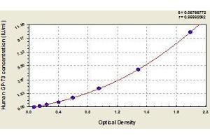 - This assay employs the quantitative sandwich enzyme immunoassay technique. Antibody specific for GP-73 has been pre-coated onto a microplate. Standards and samples are pipetted into the wells and any GP-73 present is bound by the immobilized antibody. After removing any unbound substances, a biotin-conjugated antibody specific for GP-73 is added to the wells. After washing, avidin conjugated Horseradish Peroxidase (HRP) is added to the wells. Following a wash to remove any unbound avidin-enzyme reagent, a substrate solution is added to the wells and color develops in proportion to the amount of GP-73 bound in the initial step. The color development is stopped and the intensity of the color is measured.