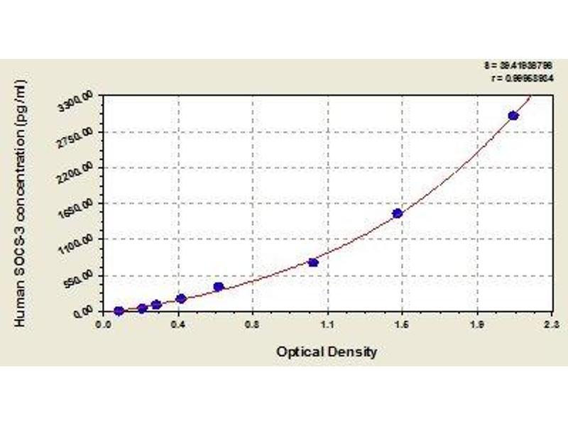 - Antibody specific for SOCS3 has been pre-coated onto a microplate. Standards and samples are pipetted into the wells and any SOCS3 present is bound by the immobilized antibody. After removing any unbound substances, a biotin-conjugated antibody specific for SOCS3 is added to the wells. After washing, avidin conjugated Horseradish Peroxidase (HRP) is added to the wells. Following a wash to remove any unbound avidin-enzyme reagent, a substrate solution is added to the wells and color develops in proportion to the amount of SOCS3 bound in the initial step. The color development is stopped and the intensity of the color is measured.