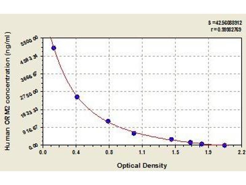 Antibody specific for ORM2 has been pre-coated onto a microplate. Standards and samples are pipetted into the wells and any ORM2 present is bound by the immobilized antibody. After removing any unbound substances, a biotin-conjugated antibody specific for ORM2 is added to the wells. After washing, avidin conjugated Horseradish Peroxidase (HRP) is added to the wells. Following a wash to remove any unbound avidin-enzyme reagent, a substrate solution is added to the wells and color develops in proportion to the amount of ORM2 bound in the initial step. The color development is stopped and the intensity of the color is measured.
