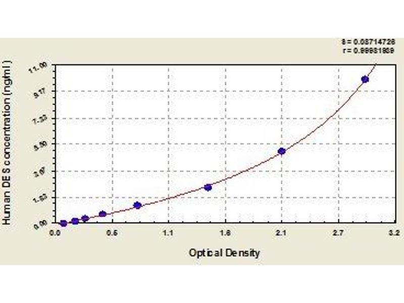 - This assay employs the quantitative sandwich enzyme immunoassay technique. Antibody specific for DES has been pre-coated onto a microplate. Standards and samples are pipetted into the wells and any DES present is bound by the immobilized antibody. After removing any unbound substances, a biotin-conjugated antibody specific for DES is added to the wells. After washing, avidin conjugated Horseradish Peroxidase (HRP) is added to the wells. Following a wash to remove any unbound avidin-enzyme reagent, a substrate solution is added to the wells and color develops in proportion to the amount of DES bound in the initial step. The color development is stopped and the intensity of the color is measured.