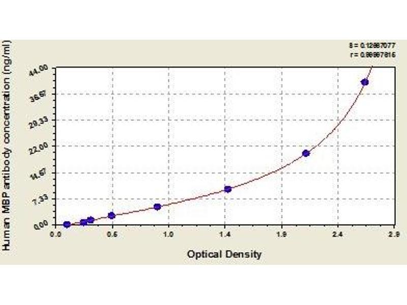 - This assay employs the quantitative sandwich enzyme immunoassay technique. The microtiter plate provided in this kit has been pre-coated with MBP. Standards and samples are pipetted into the wells with a biotin-conjugated MBP and avidin conjugated Horseradish Peroxidase (HRP) is added to the wells. Following a wash to remove any unbound reagent, a substrate solution is added to the wells and color develops in proportion to the amount of MBP antibody bound in the initial step. The color development is stopped and the intensity of the color is measured.