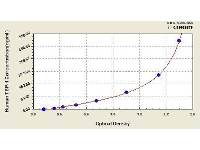 - An equation (y = 78.721x4 - 235.57x3 + 279.75x2 + 48.209x) was derived from the standard curve and used to calculate Thrombospondin-1 concentrations in samples based on their Average Absorbance values.